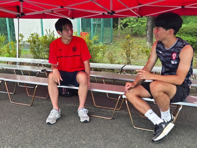 すがや:もうめちゃくちゃキツかったですよ! 1つひとつのプレーは正確だし、強度もあるし。紅白戦は目が回るような早さでついていけなかったです。でも、一緒のチームでプレーした松本(大地)選手が僕に要求をしてくれたのが嬉しかったです。気持ちに応えたいなと思いましたが、最後まで体力が持たず……でも、本当に楽しかった!