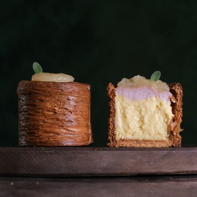 薄い幾つもの層の上に、艶やかな黄色い檸檬のジャムが上品に横たわっている。