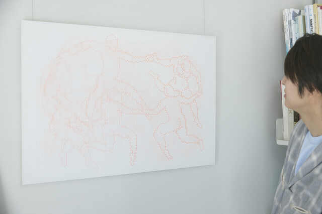 高野:へぇー、面白いです。(壁にかかっている作品を見て)この作品はすごい大きいですね。